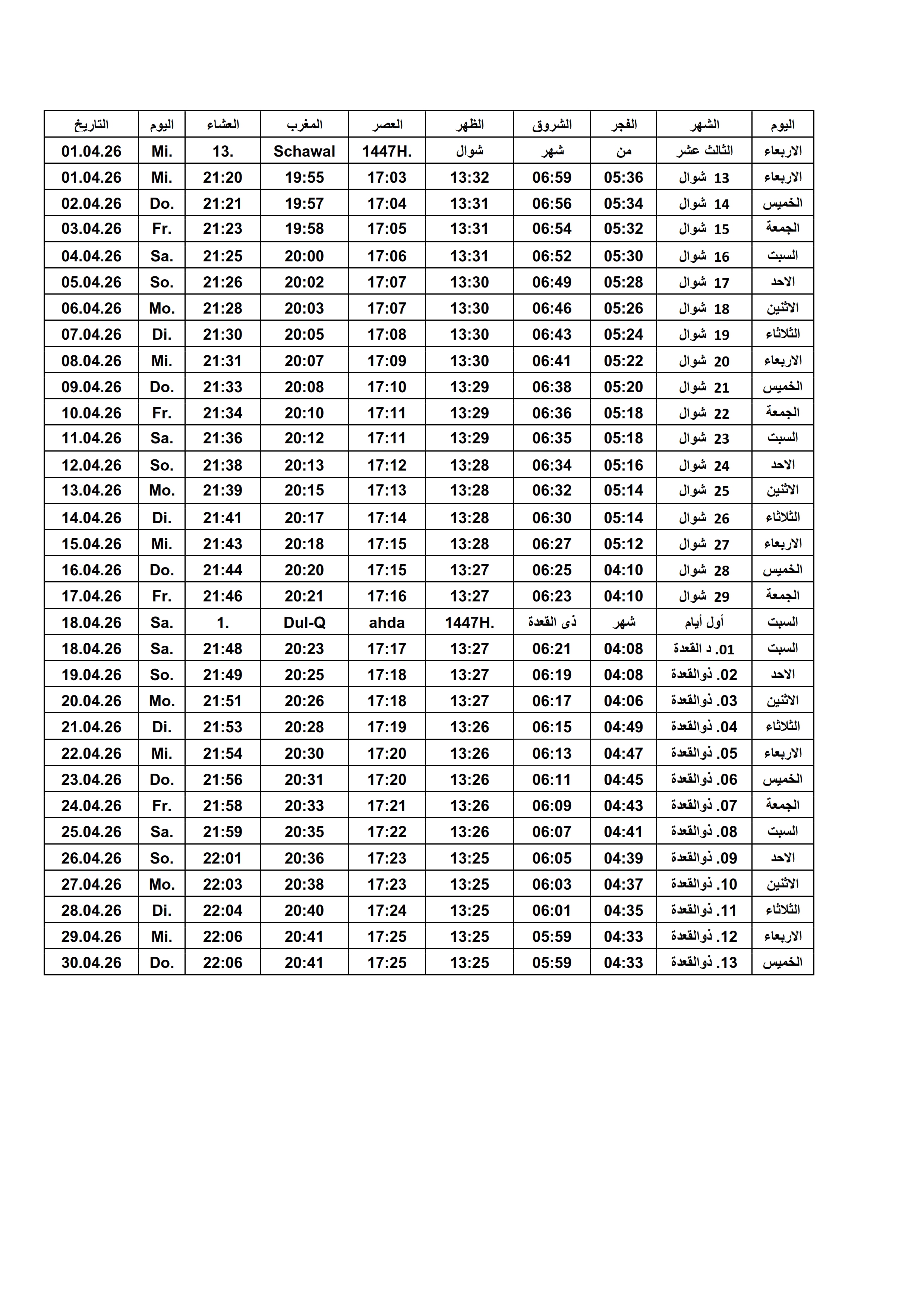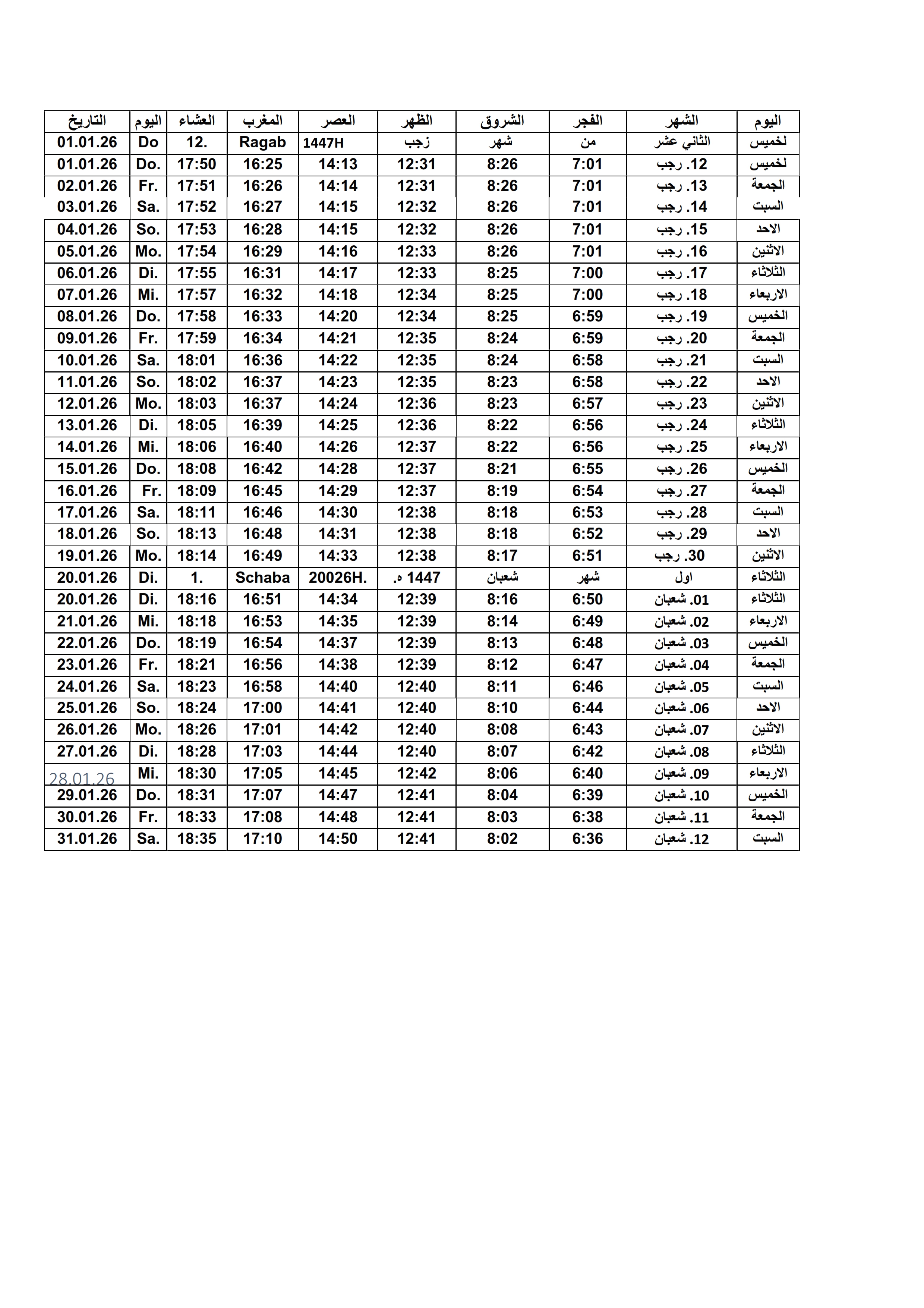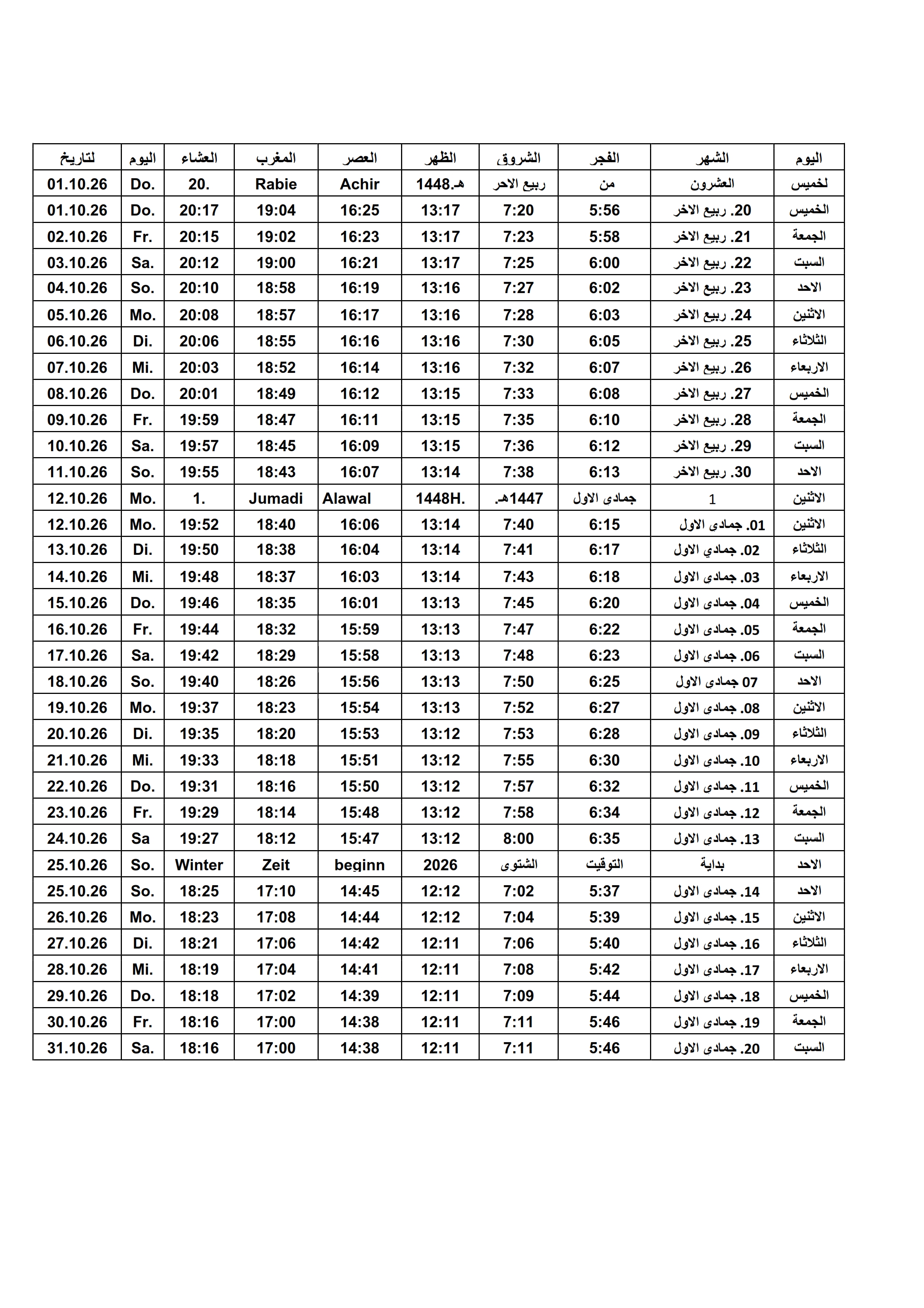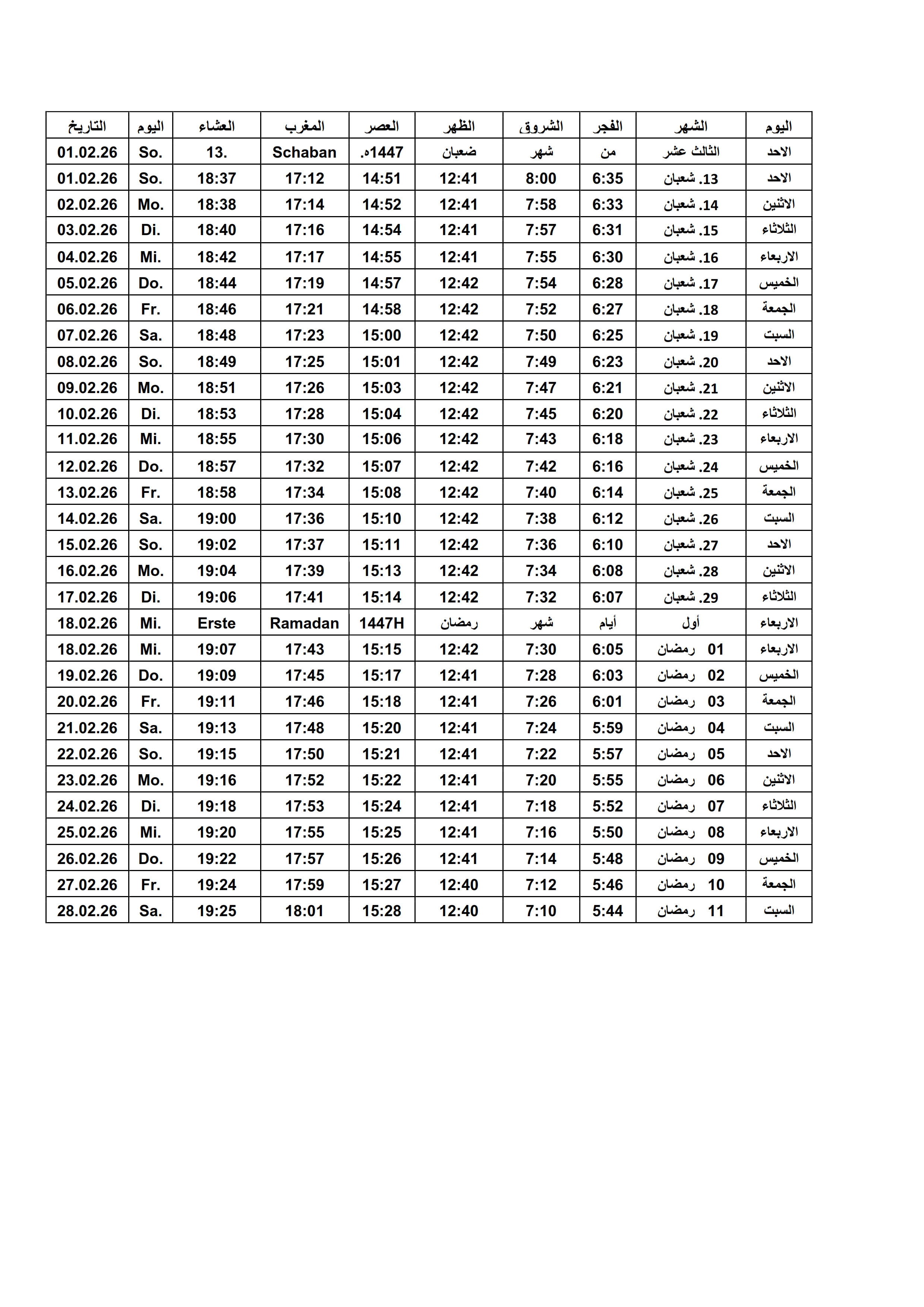 Gebetszeiten 2026