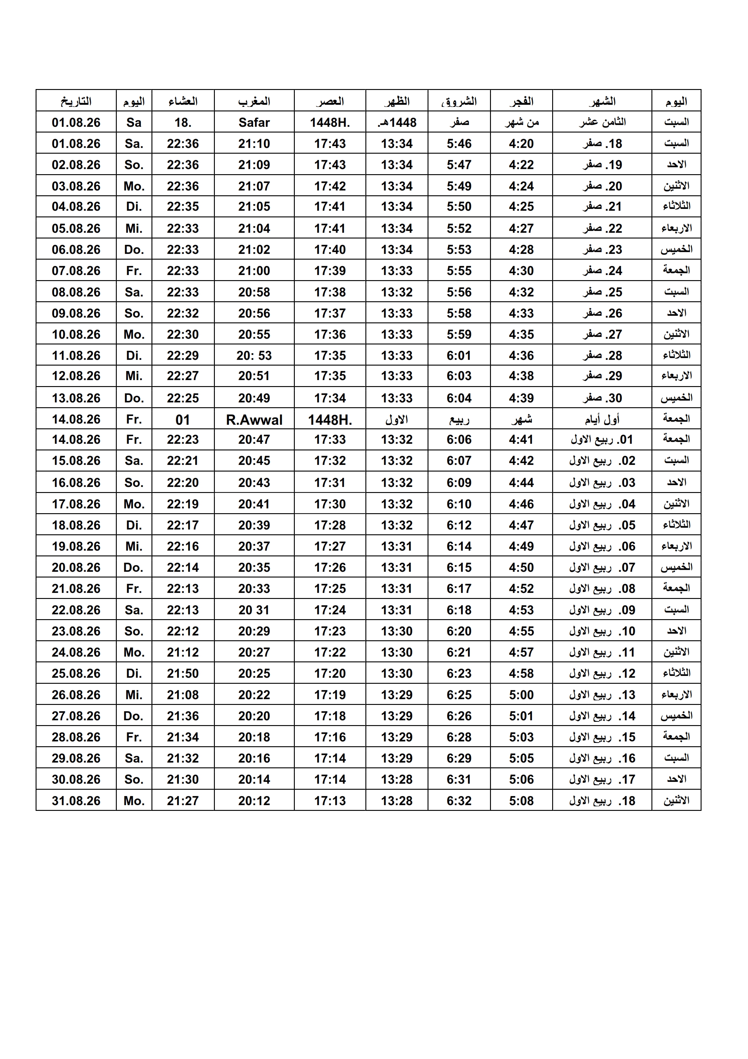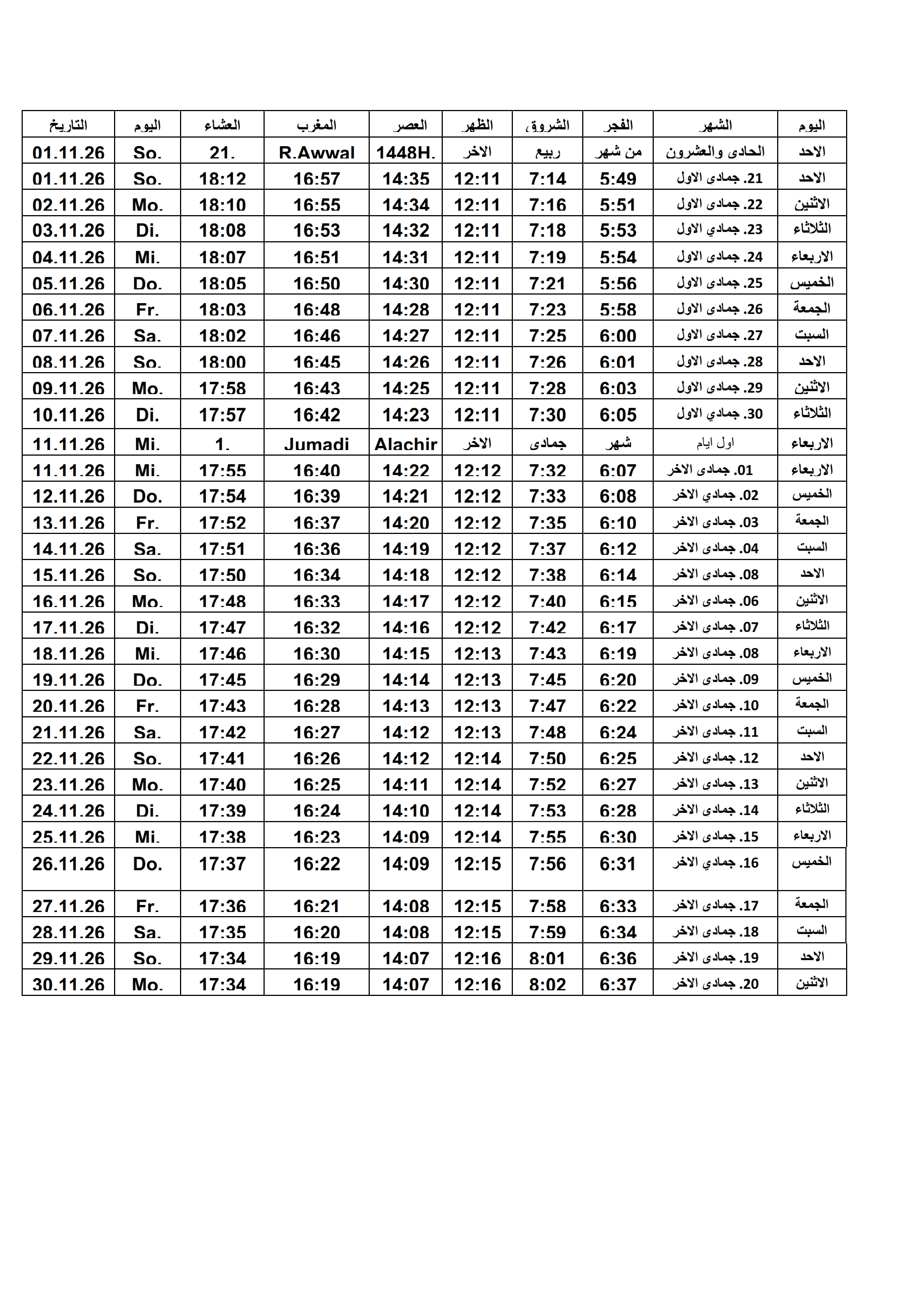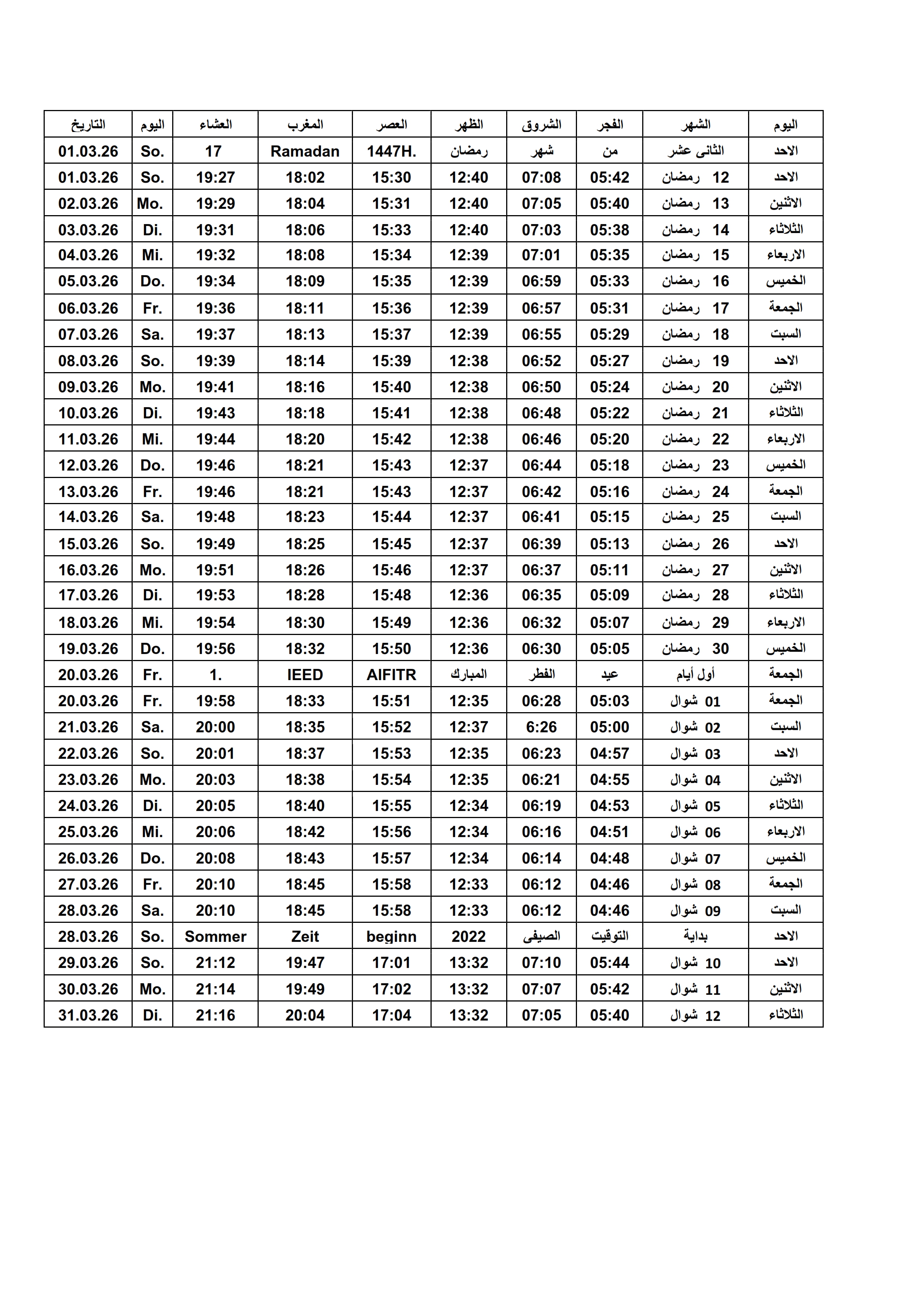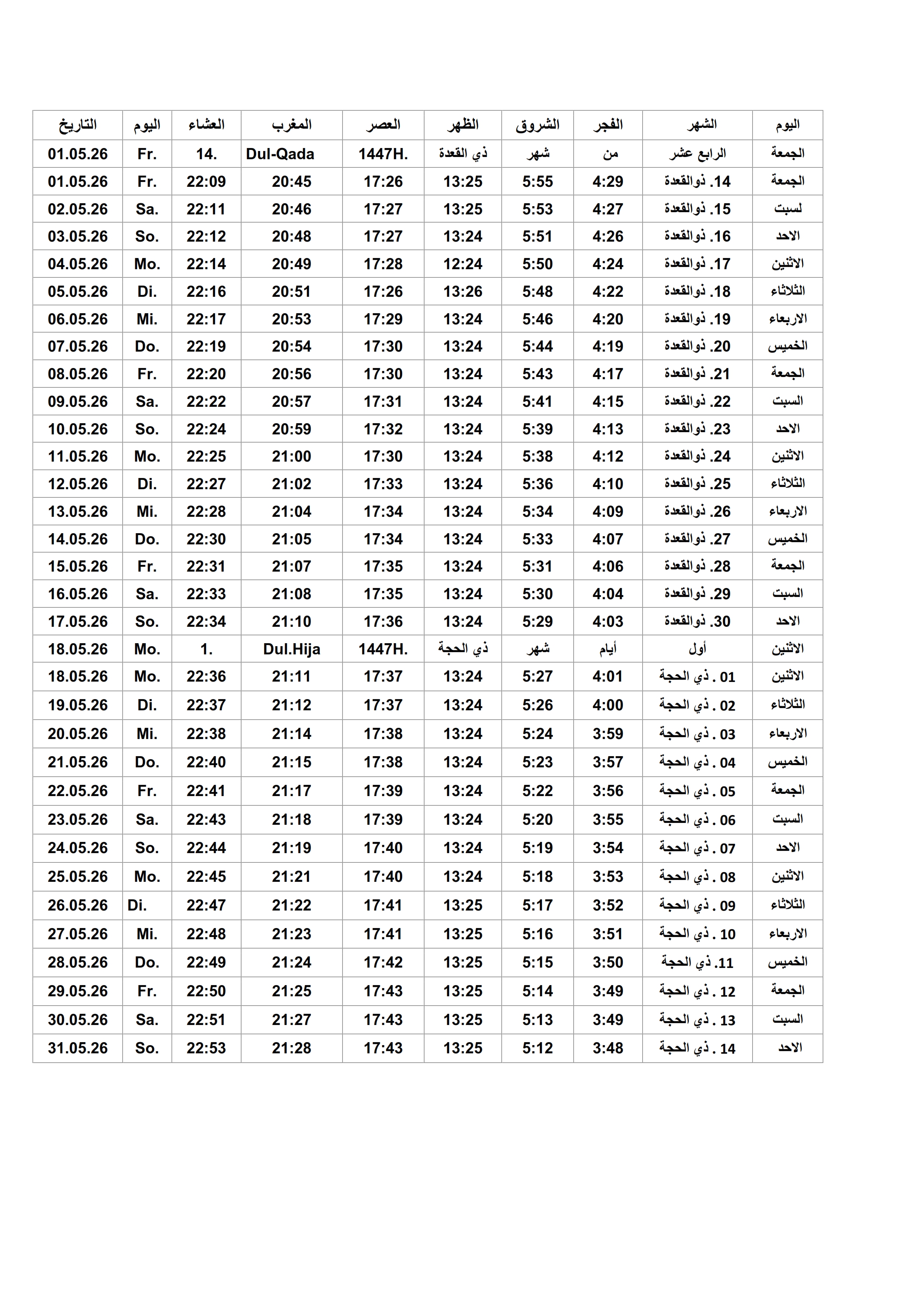 Gebetszeiten 2026