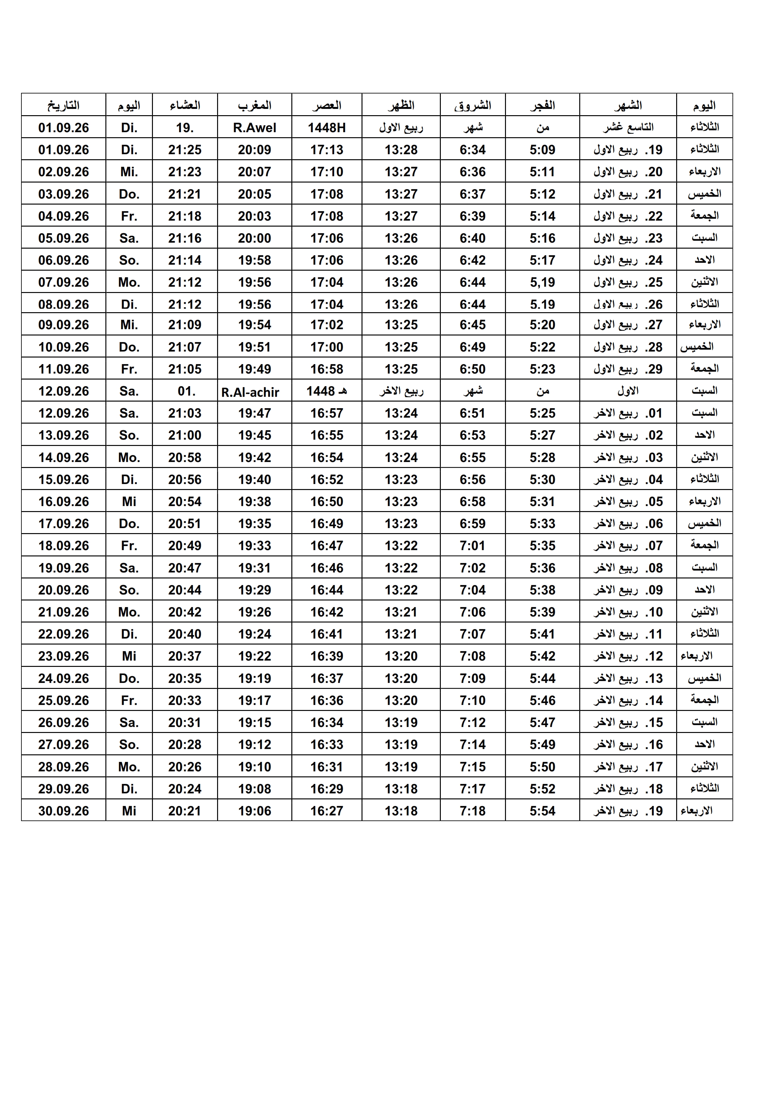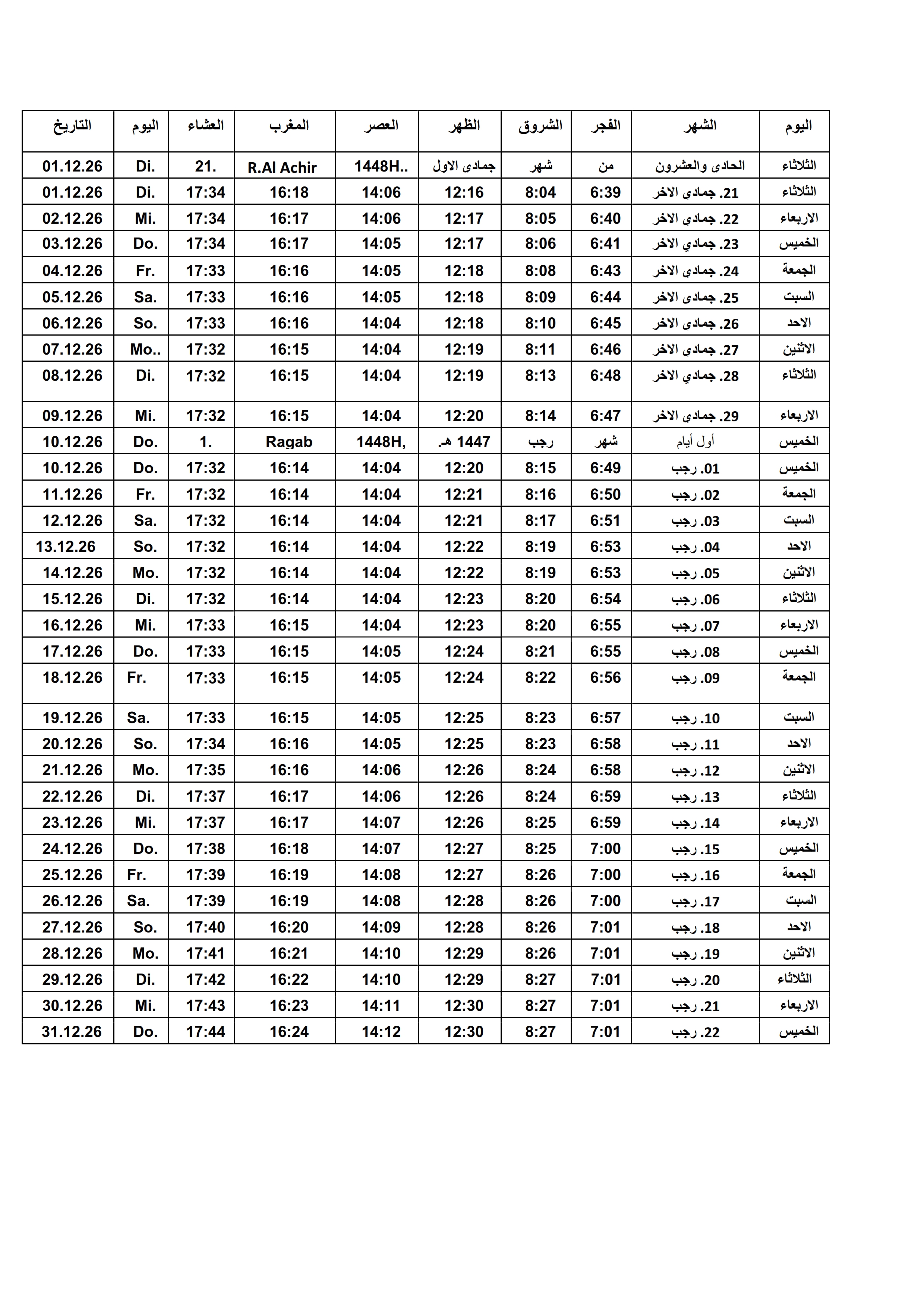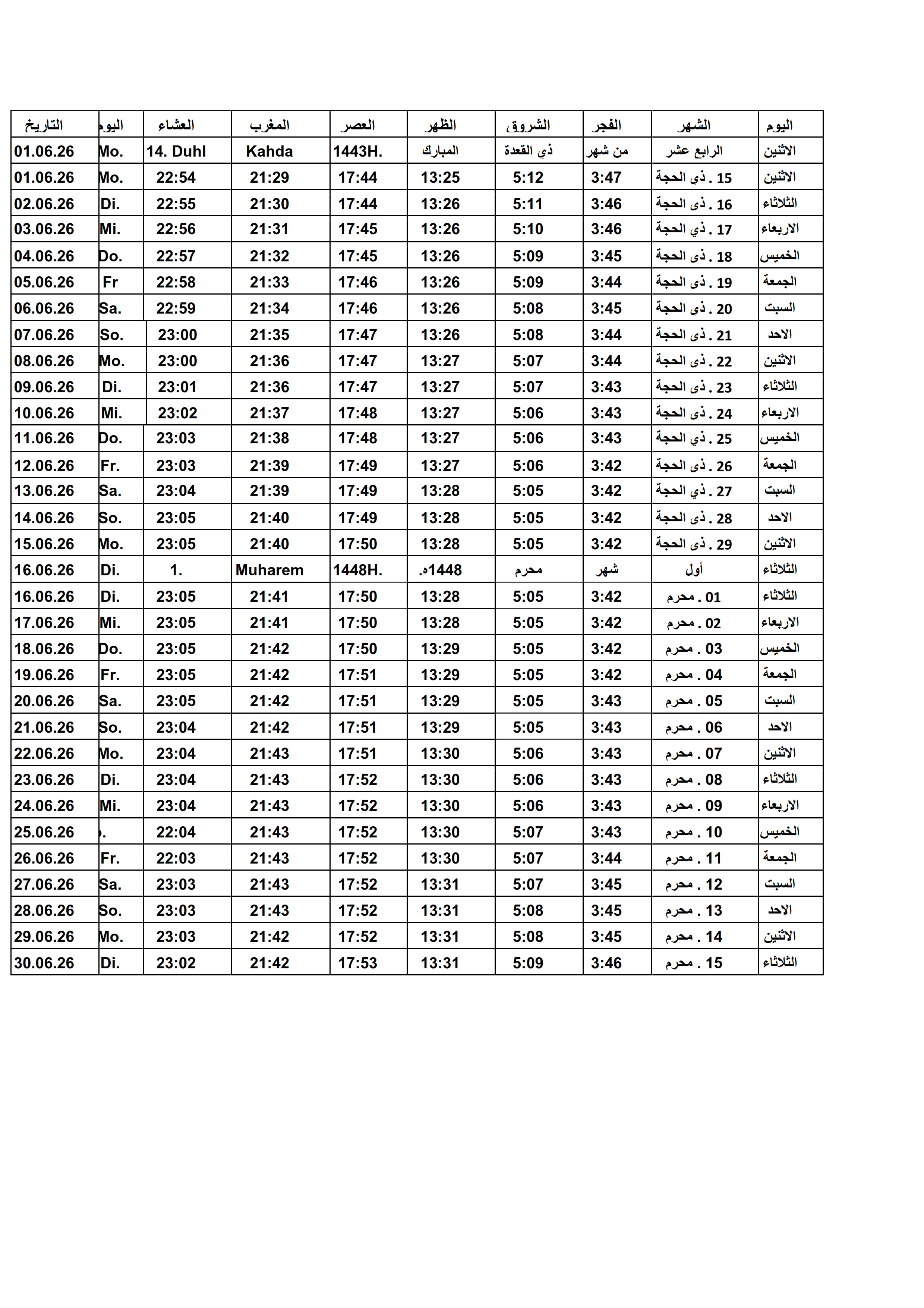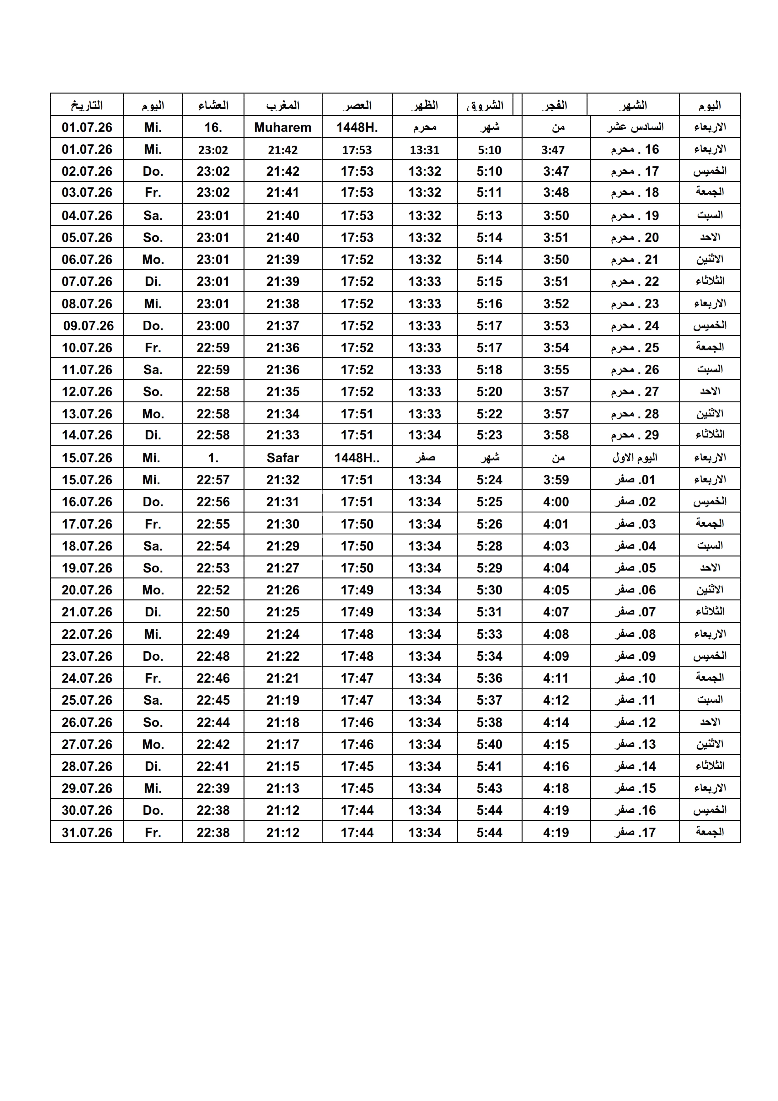 Gebetszeiten 2026